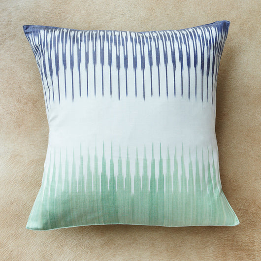 This cotton-and-silk ikat covering, patterned on both sides, has been hand-woven using a detailed 70-step process. The comb-inspired design in vibrant shades of lavender and mint green is based on centuries-old patterns and colours.